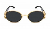 人気のラウンドシェイプのフレームに24金コートが施された金属パーツでデザインされたテンプルは、丹念に磨き上げられたイタリアンアセテートとのコンビネーションでラグジュアリーな雰囲気を演出。